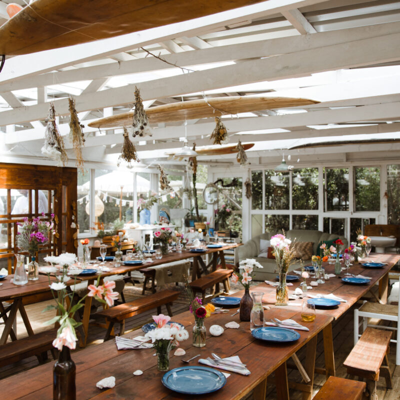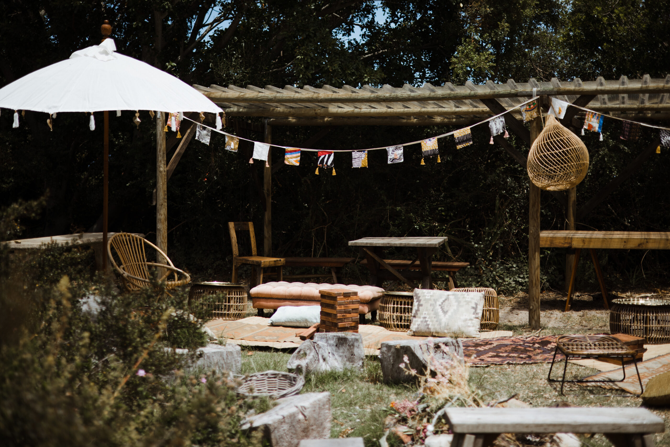 The venue is situated on a working nursery and homestead with abundant food gardens, chickens, pigs, goats and access to a private mountain lush with fynbos, birds and incredible views of Scarborough and Cape Point.